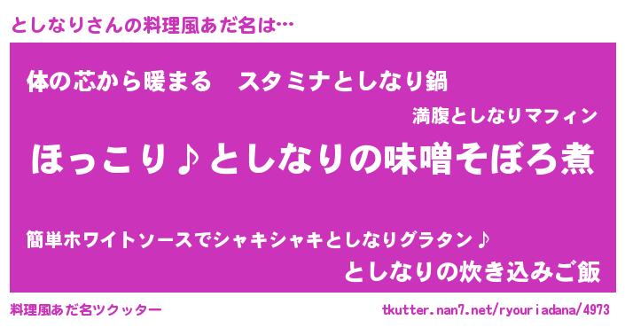 | ヒーロー風カッコイイあだ名 | 『スーパートシナリ』『ネオトシナリ』 |