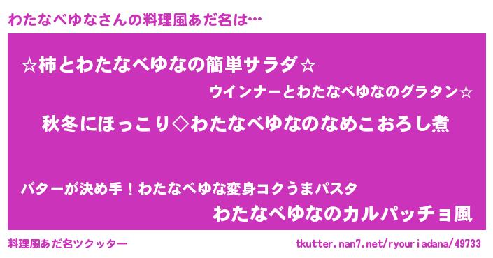 | 男性向けラノベタイトル風あだ名 | 『わたなべゆなに滅ぼされるだけの簡単なお仕事です』 |