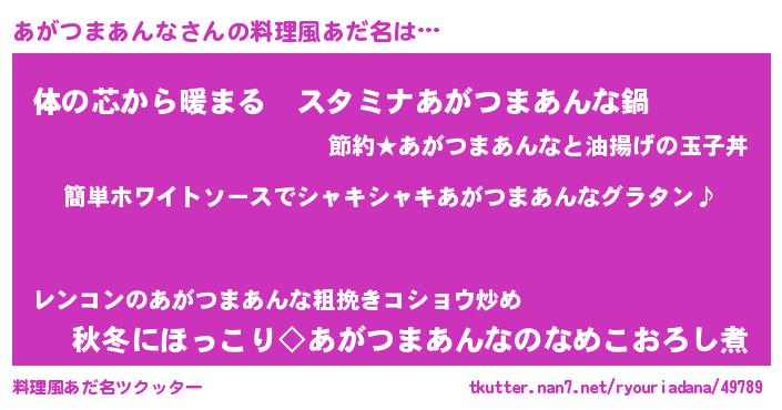 | ポケモン風あだ名 | 『ヒアガツマアンナ』『アガツダネ』 |