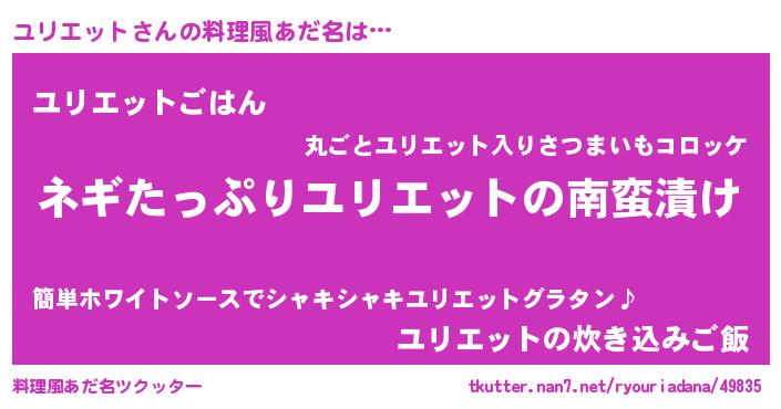 | 胡散臭い通販商品みたいなあだ名 | 『億万長者になれる水晶球…その名も「ユリエット」』 |