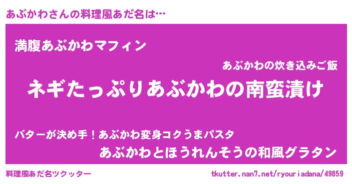 | 意味不明あだ名 | 『ペロリンあぶかわ』『永久保存あぶかわ』 |