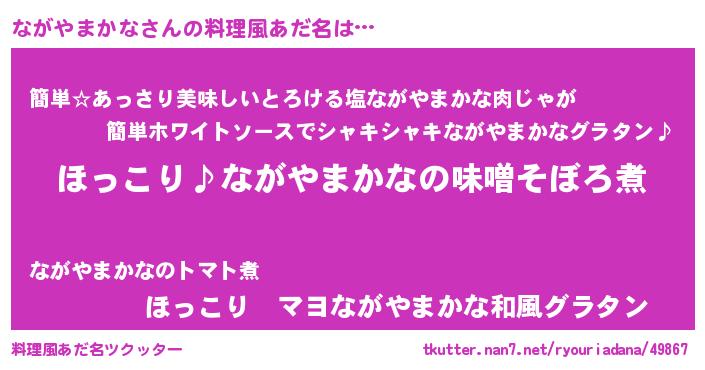 | 意味不明あだ名 | 『ペロリンながやまかな』 |