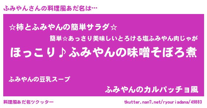 | 男性向けラノベタイトル風あだ名 | 『ふみやんの憂鬱』『魔弾の王とふみやん』 |