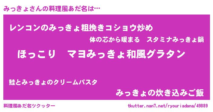 | 男性向けラノベタイトル風あだ名 | 『この素晴らしい世界にみっきょを!』 |