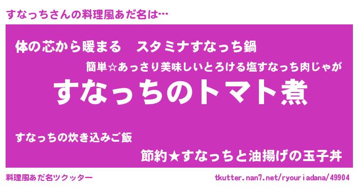 | 男性向けラノベタイトル風あだ名 | 『おまえをオタクにしてやるから、俺をすなっちにしてくれ! 』 |