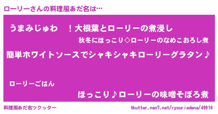 | 男性向けラノベタイトル風あだ名 | 『ローリーの嫁は女の子じゃないと思った?』 |