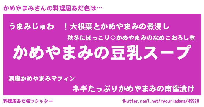 | 胡散臭い通販商品みたいなあだ名 | 『信頼と実績のサプリメント…その名も「かめやまみ」』 |
