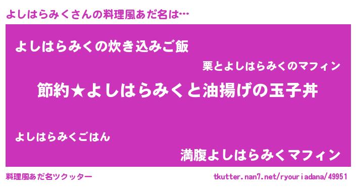 | ヘコむあだ名 | 『よしにゅー』『よしはらみく(震え声)』 |