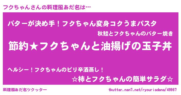 | 意味不明あだ名 | 『ペロリンフクちゃん』『自称フクちゃん』 |