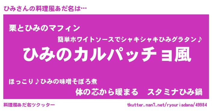 | ヒーロー風カッコイイあだ名 | 『仮面ヒミダー』『ウルトラひみマン』 |
