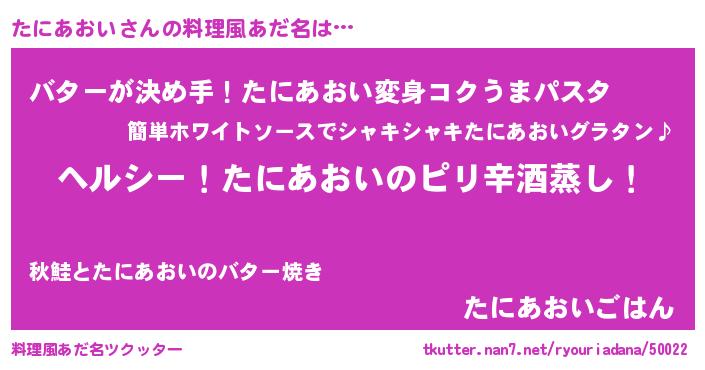 | 男性向けラノベタイトル風あだ名 | 『Re:たにあおいから始める異世界生活』 |
