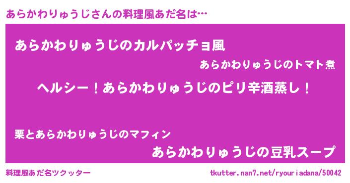 | 男性向けラノベタイトル風あだ名 | 『Re:あらかわりゅうじから始める異世界生活』 |
