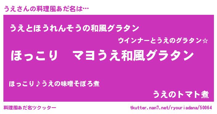 | 男性向けラノベタイトル風あだ名 | 『この素晴らしい世界にうえを!』 |