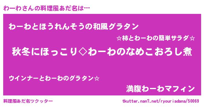 | ヘコむあだ名 | 『わーわ(笑)』『つくし』『わーにー』 |