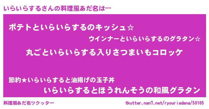 | 意味不明あだ名 | 『住所不定無職いらいらする(6歳)』 |