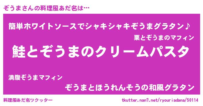 | 男性向けラノベタイトル風あだ名 | 『ノーゲーム・ノーゾウマ』 |
