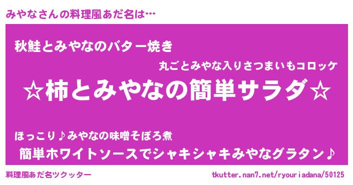 | ヘコむあだ名 | 『みやな(笑)』『みやを』『みやにー』 |