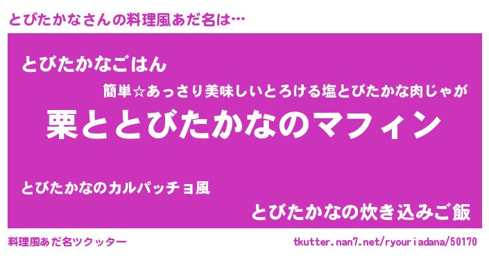 | ヒーロー風カッコイイあだ名 | 『ネオトビタカナ』『仮面トビダー』 |