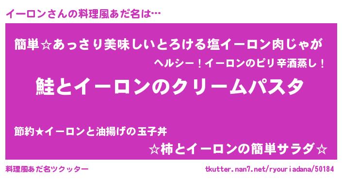 | 女子向けラノベタイトル風あだ名 | 『死神イーロンの再婚』 |