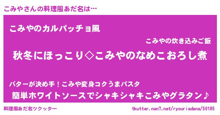 | 男性向けラノベタイトル風あだ名 | 『こみやに滅ぼされるだけの簡単なお仕事です』 |