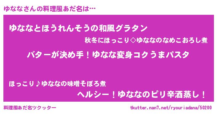 | ヘコむあだ名 | 『ゆなふぇ~』『ゆなな(爆)』 |