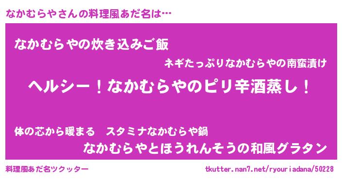 | ヘコむあだ名 | 『なかにゅー』『酢こんぶ』 |