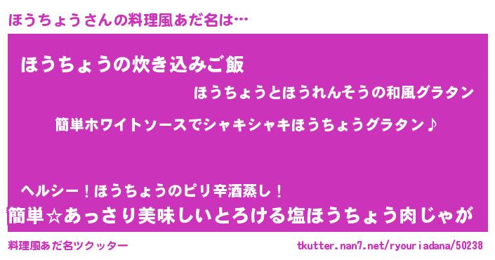 | 男性向けラノベタイトル風あだ名 | 『ほうちょうの嫁は女の子じゃないと思った?』 |
