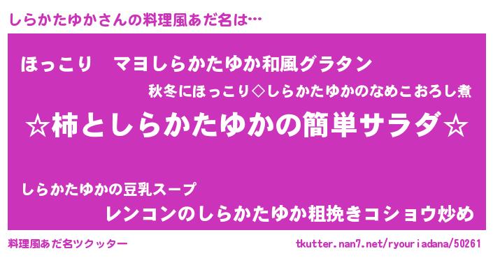 | 意味不明あだ名 | 『住所不定無職しらかたゆか(4歳)』 |