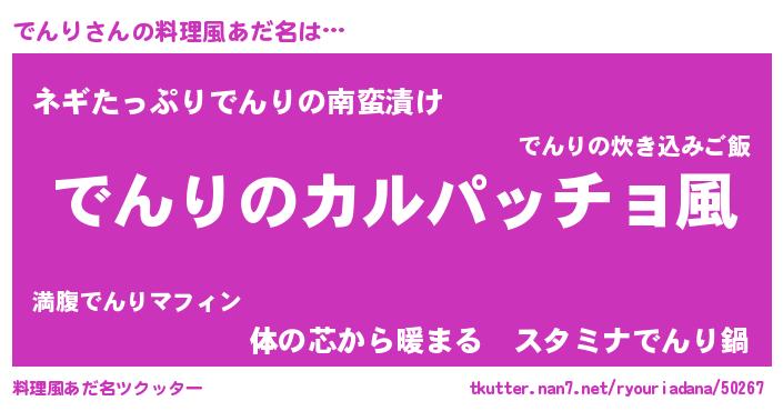 | 男性向けラノベタイトル風あだ名 | 『魔弾の王とでんり』 |