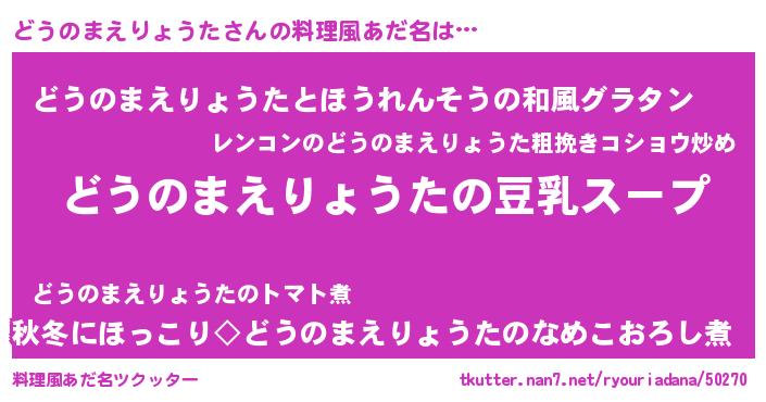 | 女子向けラノベタイトル風あだ名 | 『どうのまえりょうたは平凡を望む』 |
