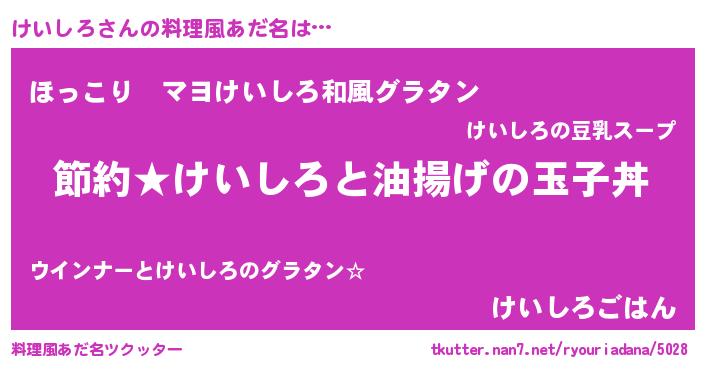 | 男性向けラノベタイトル風あだ名 | 『けいしろの憂鬱』『ケイシロスレイヤー』 |