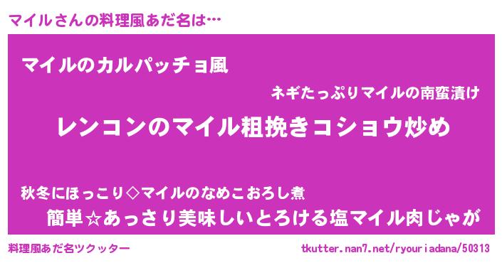 | ヒーロー風カッコイイあだ名 | 『超時空戦士マイル』『仮面マイダー』 |