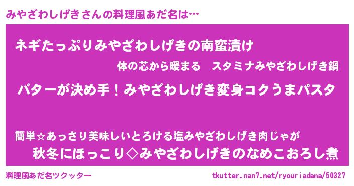| 男性向けラノベタイトル風あだ名 | 『ノーゲーム・ノーミヤザワシゲキ』 |