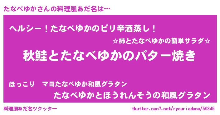 | ヘコむあだ名 | 『たなべゆか(笑)』『たなにゅー』 |