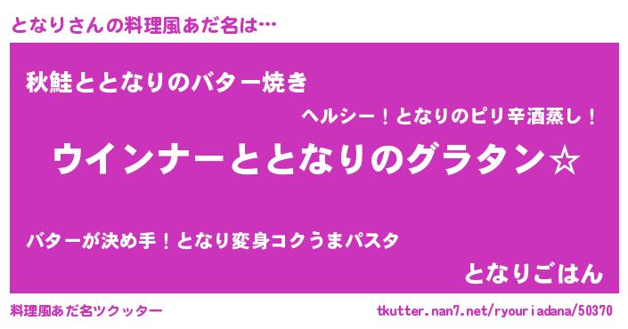 | ヒーロー風カッコイイあだ名 | 『ウルトラとなりマン』『ネオトナリ』 |