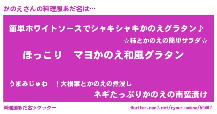 | 意味不明あだ名 | 『住所不定無職かのえ(89歳)』 |