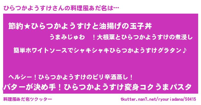 | 男性向けラノベタイトル風あだ名 | 『ひらつかようすけの嫁は女の子じゃないと思った?』 |
