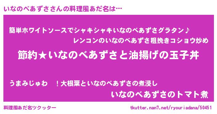| 男性向けラノベタイトル風あだ名 | 『イナノベアズサアートオンライン』 |
