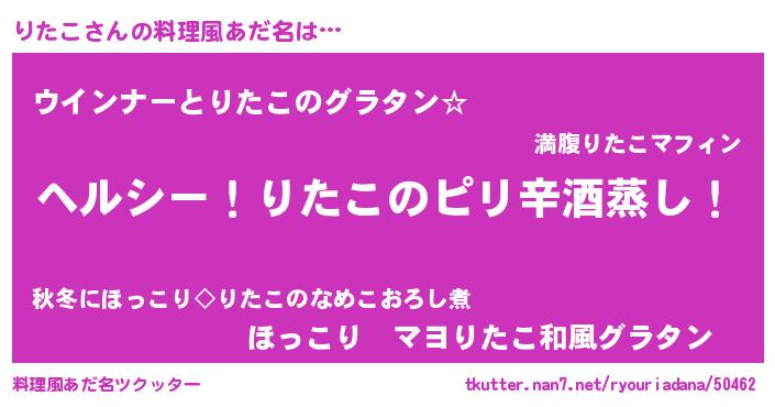 | 男性向けラノベタイトル風あだ名 | 『Re:りたこから始める異世界生活』 |