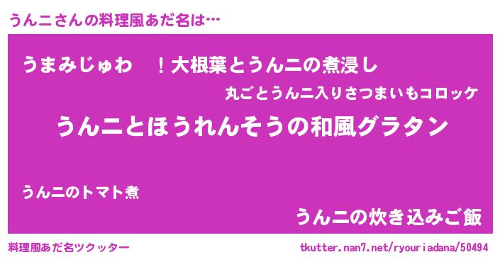 | 意味不明あだ名 | 『なめこ科うんニ属』『永久保存うんニ』 |