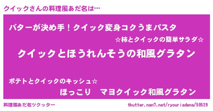 | 女子向けラノベタイトル風あだ名 | 『クイックの玉の輿計画!』 |