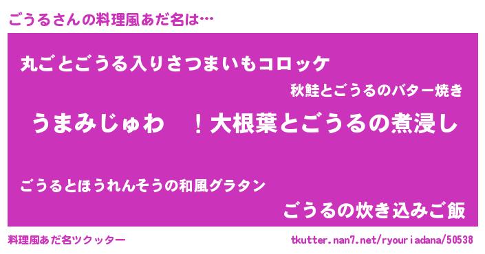 | ヘコむあだ名 | 『酢こんぶ』『ごうる(爆)』 |