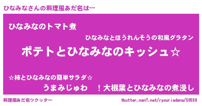 | ヒーロー風カッコイイあだ名 | 『銀牙騎士ヒナ』『正義の使者ひなみな』 |