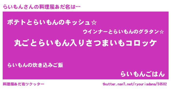 | 意味不明あだ名 | 『住所不定無職らいもん(7歳)』 |