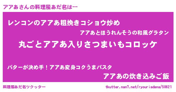 | ヒーロー風カッコイイあだ名 | 『仮面アアダー』『サイバー戦士アアア』 |