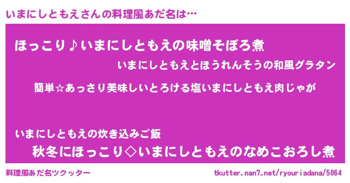 | 意味不明あだ名 | 『永久保存いまにしともえ』 |