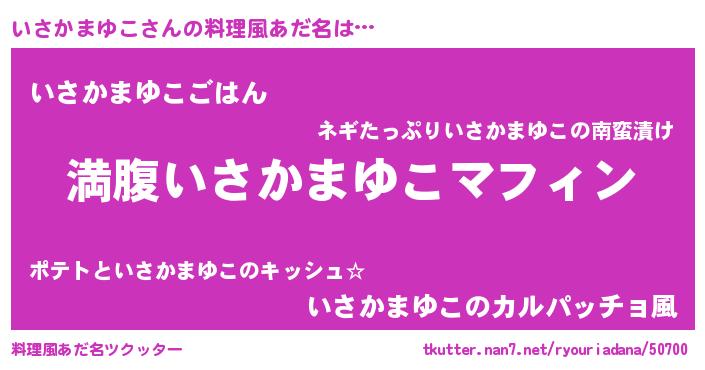 | 恥ずかしいあだ名 | 『いさちん』『プリティーいさかまゆこ』 |
