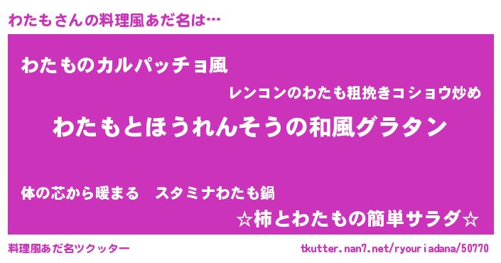 | 意味不明あだ名 | 『ヨモギ科わたも属』『自称わたも』 |