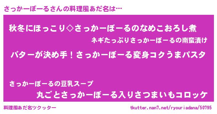 | 女子向けラノベタイトル風あだ名 | 『さっかーぼーる恋絵巻』 |