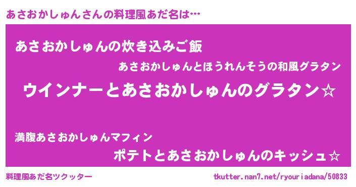 | 意味不明あだ名 | 『あさおかしゅんフォーエバー』 |